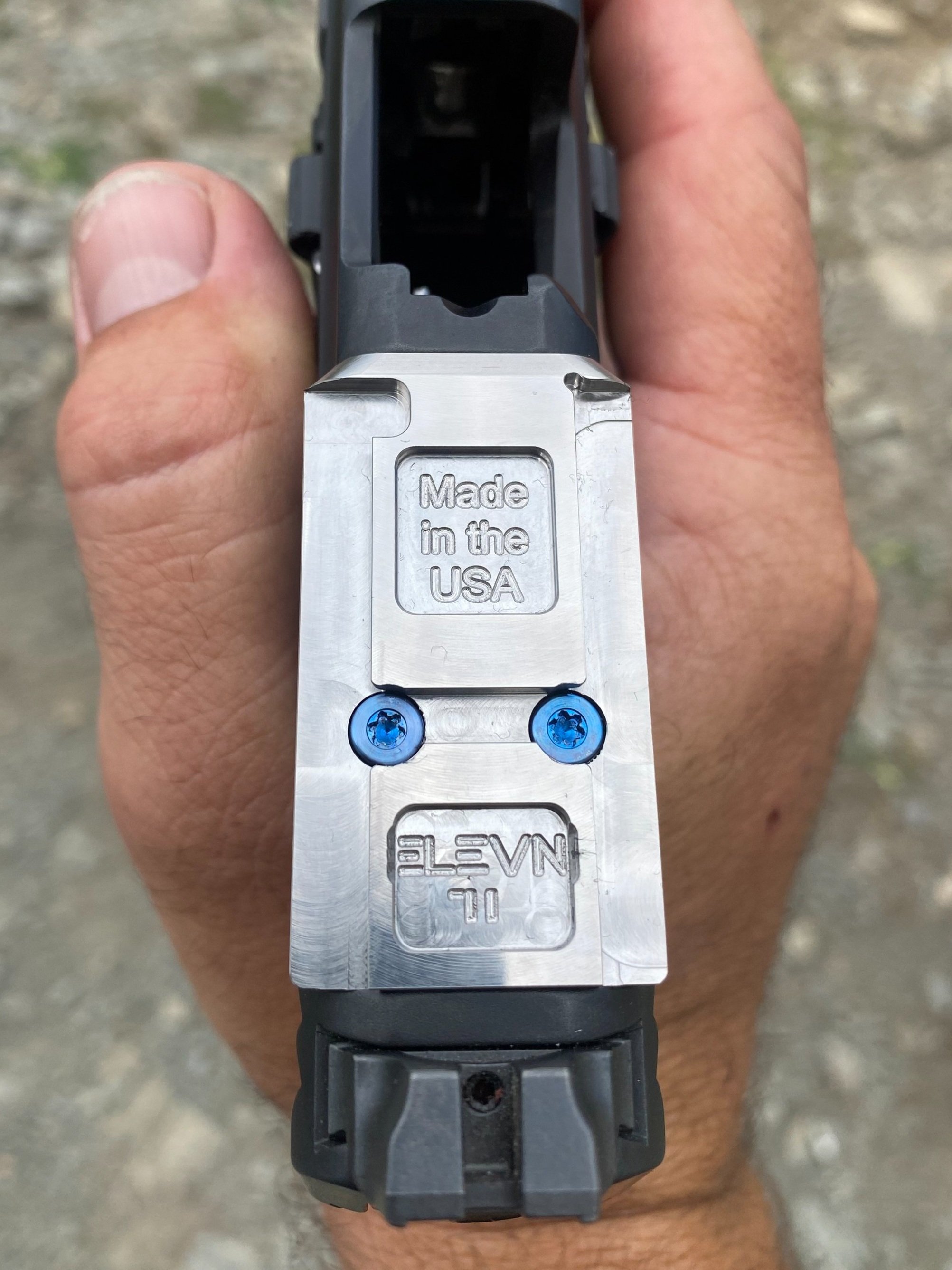 Each plate ships with two custom-made, heavy-duty 6Al-4V titanium mounting screws, finished in a contrasting color to enhance both durability and visual appeal.